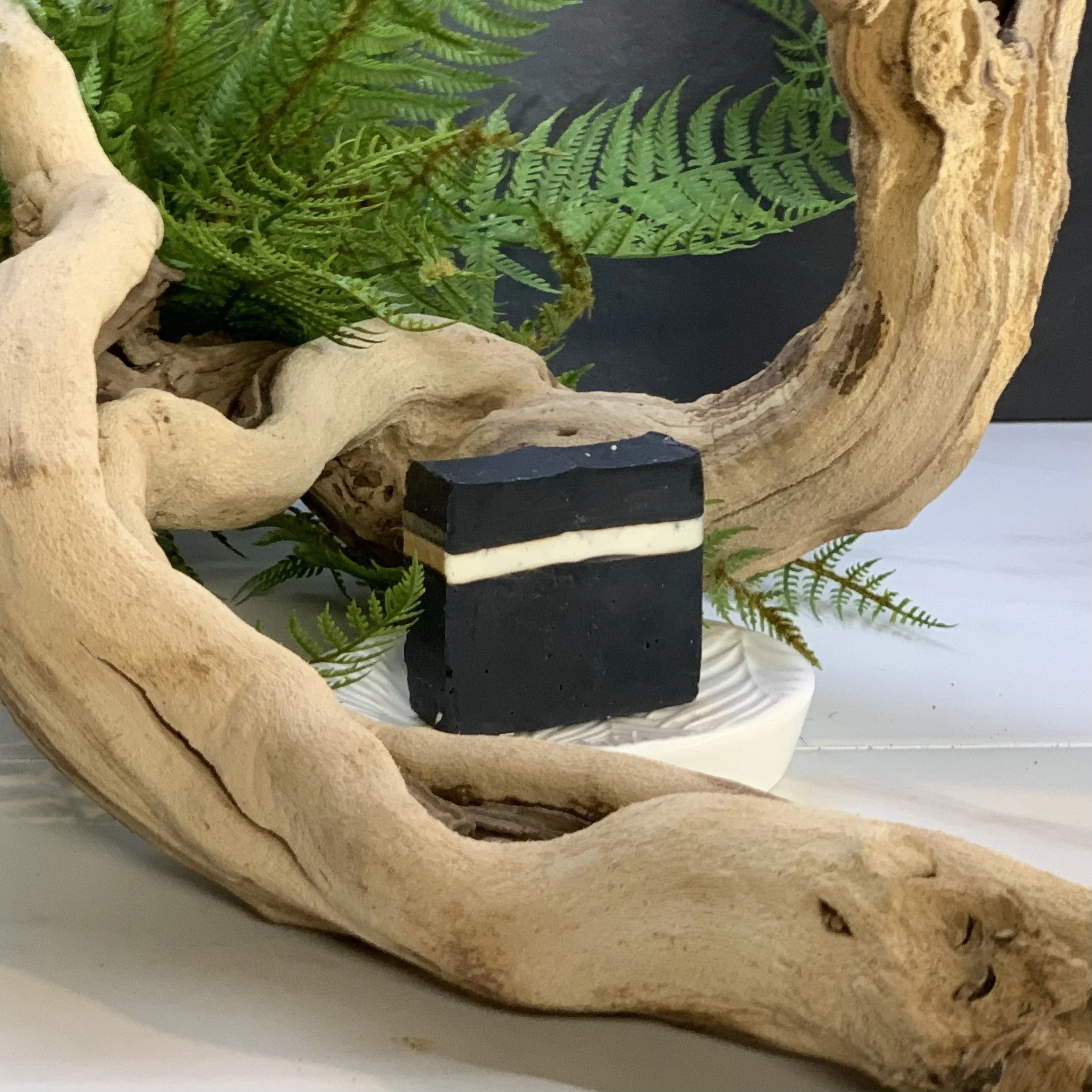 Ingredients: Water, Olive Oil, Palm Oil, Coconut Oil, Castor Oil, Avocado Oil, Cocoa Butter Pastilles, Sweet Almond Oil, Sodium Hydroxide (Lye), Sodium Lactate, Activated Charcoal, Titanium Dioxide (natural colorant), Fragrance